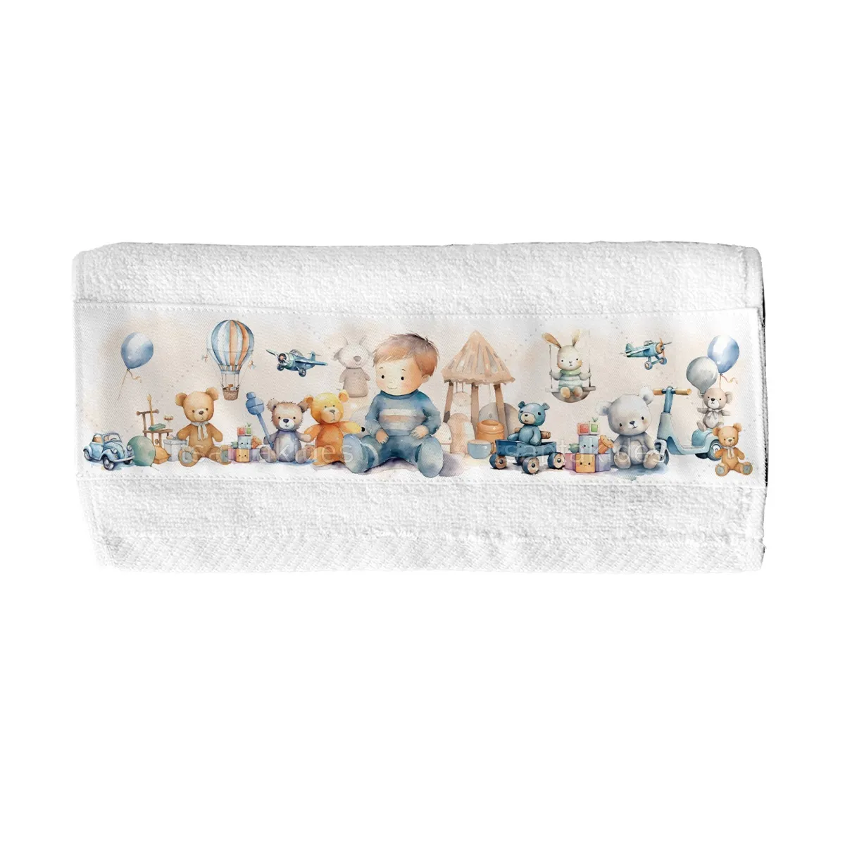1,90 €Λευκή βαμβακερή πετσέτα με υφασμάτινη φάσα εκτυπωμένη και ραμμένη. Προτείνεται για μπομπονιέρα, δώρο για πάρτι κ.λπ.