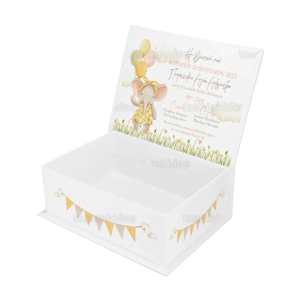 2,10 €Κουτί κασετίνα εκτυπωμένο με θέμα Summer Elephant ΕΦΑΡΜΟΓΕΣ Βάπτιση, Πάρτυ γενεθλίων, Baby Shower, Gender Reveal κ.α. ΧΑΡΑΚΤΗΡΙΣΤΙΚΑ ΕΠΕΝΔΥΣΗ: A/A 229 – BRISTOL ΛΕΥΚΟ 140gr ΧΑΡΤΟΝΙ: A/A 1001…