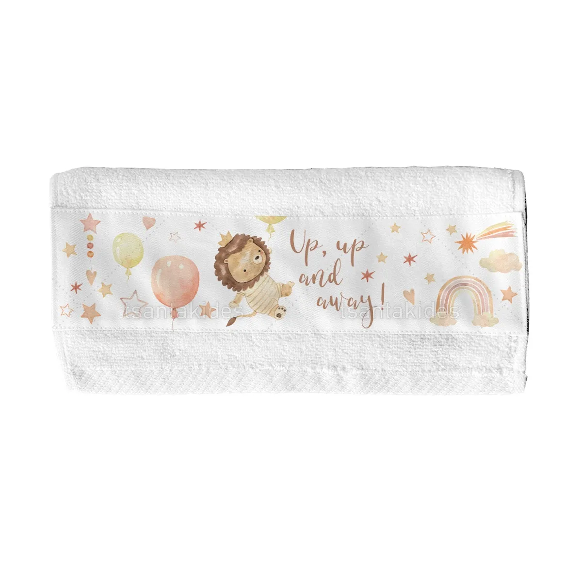1,90 €Λευκή βαμβακερή πετσέτα με υφασμάτινη φάσα εκτυπωμένη και ραμμένη. Προτείνεται για μπομπονιέρα, δώρο για πάρτι κ.λπ.