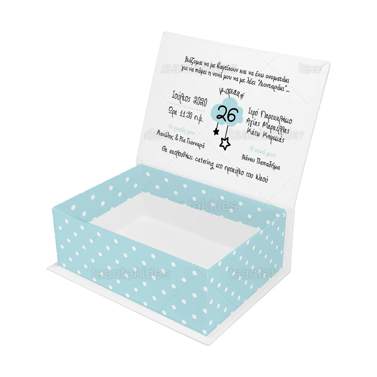 2,10 €Κουτί κασετίνα εκτυπωμένο με θέμα Cute flying lion ΕΦΑΡΜΟΓΕΣ Βάπτιση, Πάρτυ γενεθλίων, Baby Shower, Gender Reveal κ.α. ΧΑΡΑΚΤΗΡΙΣΤΙΚΑ ΕΠΕΝΔΥΣΗ: A/A 229 – BRISTOL ΛΕΥΚΟ 140gr ΧΑΡΤΟΝΙ: A/A…