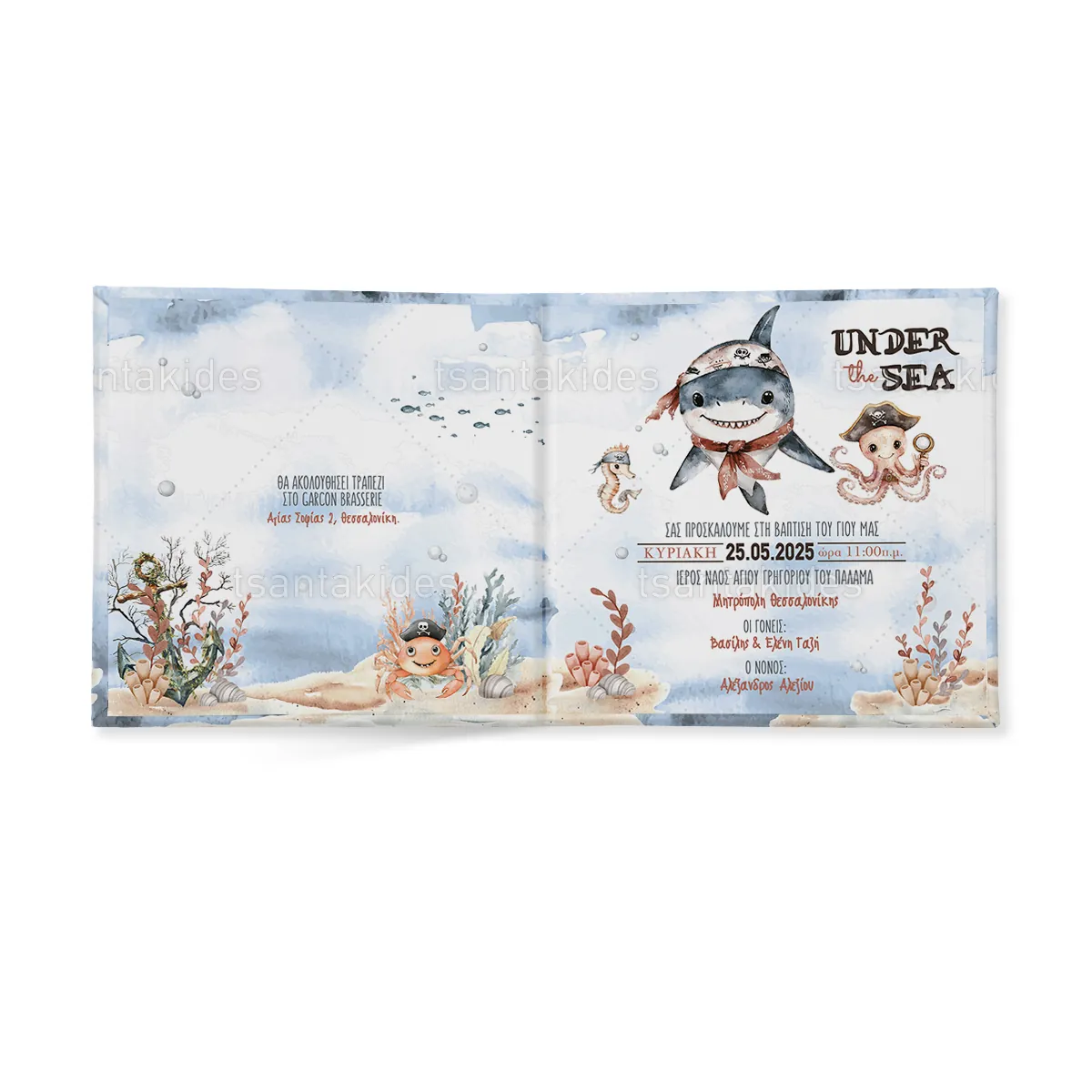 1,00 €Προσκλητήριο σκληρό καπάκι, παραμυθάκι μικρό, εκτυπωμένο με θέμα Baby Under the sea pirate ΕΦΑΡΜΟΓΕΣ Βάπτιση, Πάρτυ γενεθλίων, Baby Shower, Gender Reveal κ.α. ΧΑΡΑΚΤΗΡΙΣΤΙΚΑ Χαρτί : …