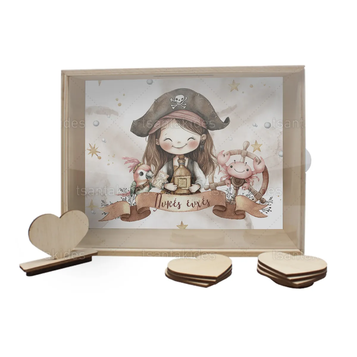 12,00 €Ξύλινο κουτί ευχών βάπτισης εκτυπωμένο με θέμα Pirate Girl ΕΦΑΡΜΟΓΕΣ Βάπτιση, Πάρτυ γενεθλίων, Baby Shower, Gender Reveal κ.α. ΧΑΡΑΚΤΗΡΙΣΤΙΚΑ Κουτί: Φυσικό Ξύλο 3mm Βιτρίνα: Plexi Glass…