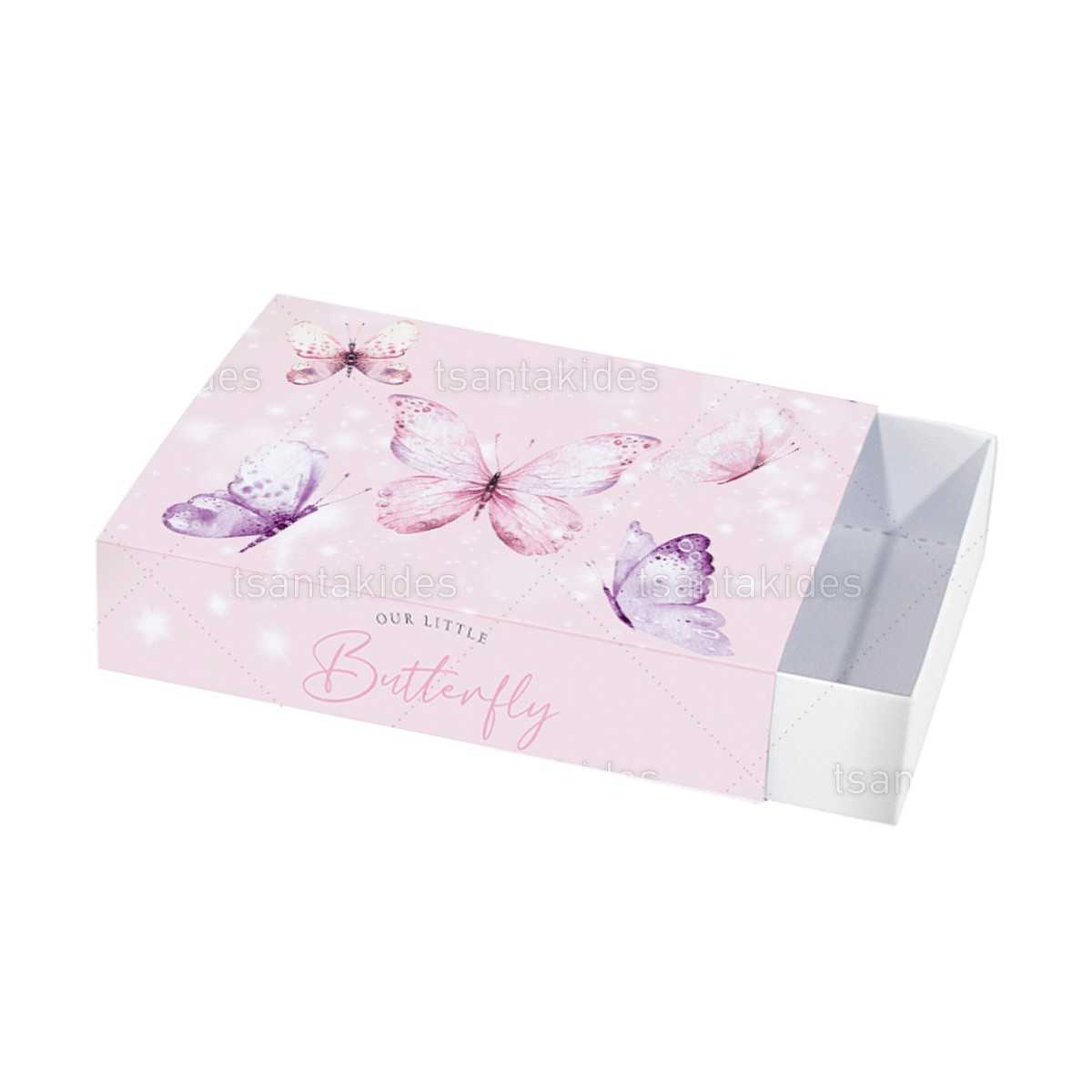 0,80 €Κουτί συρταρωτό εκτυπωμένο με θέμα την πεταλούδαΕΦΑΡΜΟΓΕΣΒάπτιση, Πάρτυ γενεθλίων, Baby Shower, Gender Reveal κ.α.ΧΑΡΑΚΤΗΡΙΣΤΙΚΑΧΑΡΤΙ: A/A 230 – BRISTOL ΛΕΥΚΟ 250grΕΚΤΥΠΩΣΗ:ΚΑΛΥΜΜΑ: 1 οψηΣΥΡΤΑΡΙ: ατύπωτοΔΙΑΣΤΑΣΗ:13,5×9,5×3* Συναρμολογείται από τον πελάτη.