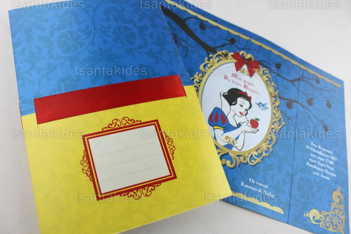 0,25 €Προσκλητήριο βάπτισης παπυράκι εκτυπωμένο με θέμα Snow White ΕΦΑΡΜΟΓΕΣ Βάπτιση, Πάρτυ γενεθλίων, Baby Shower, Gender Reveal κ.α. ΧΑΡΑΚΤΗΡΙΣΤΙΚΑ ΧΑΡΤΙ: 120gr έως 160gr ΕΚΤΥΠΩΣΗ: 1 όψη…