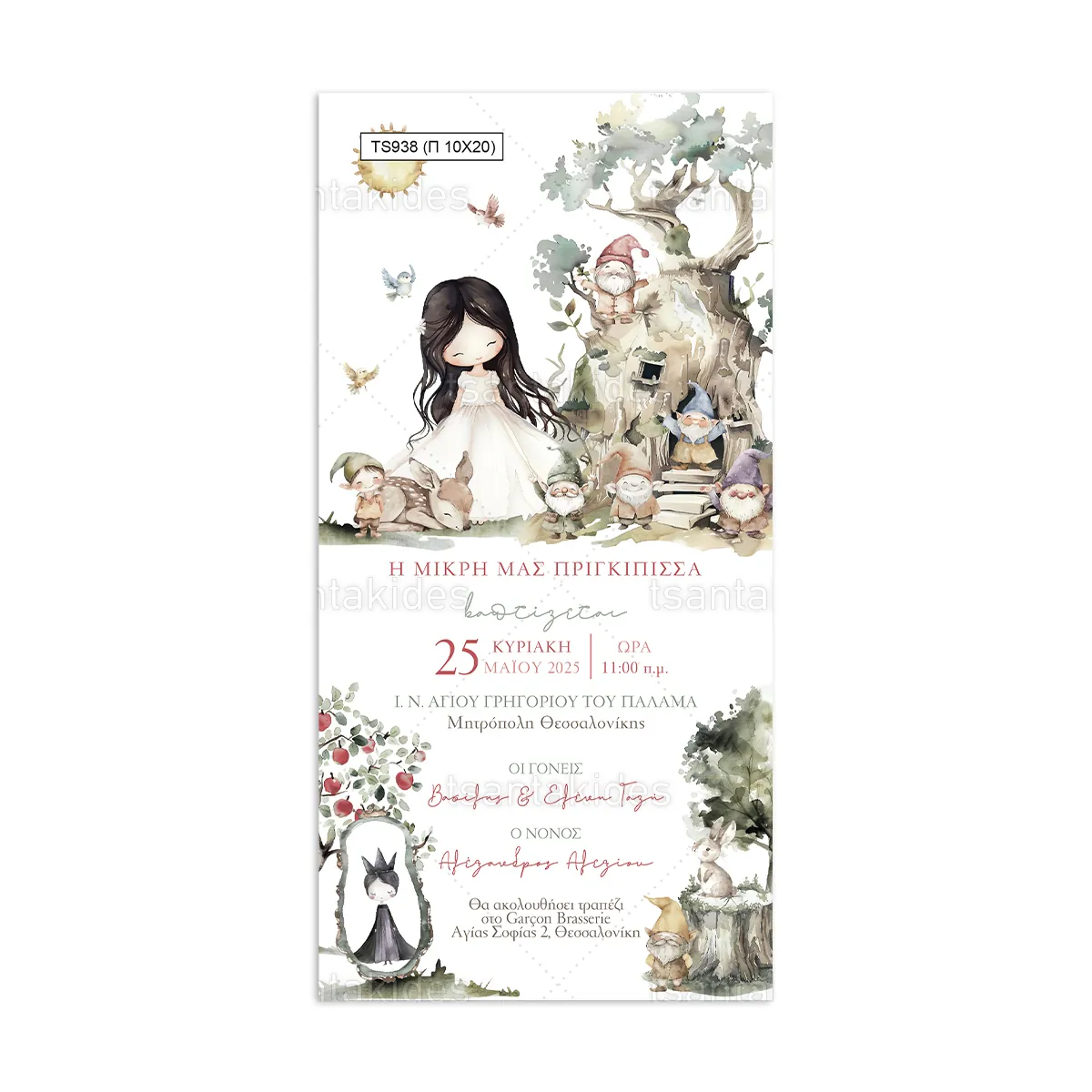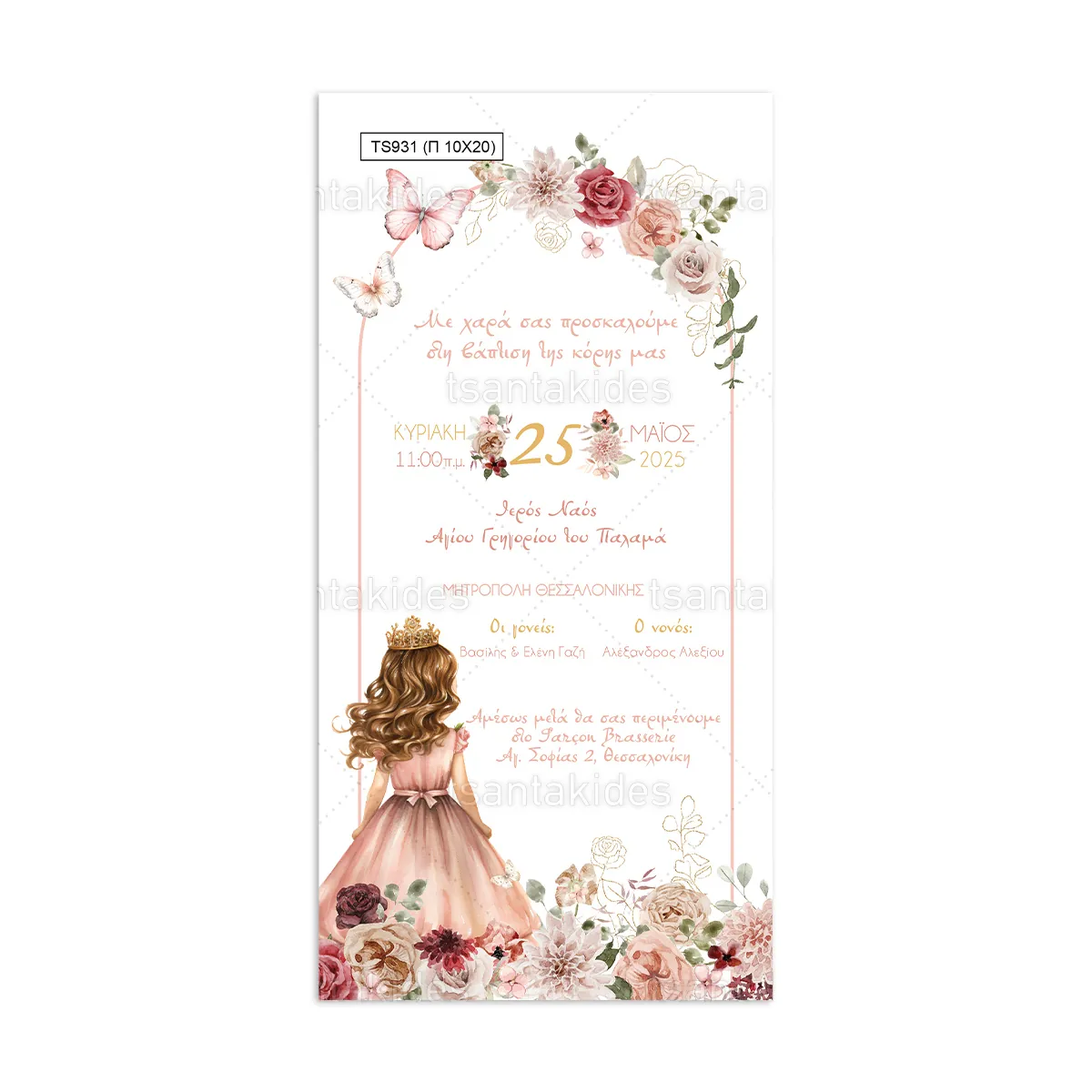 0,70 €Προσκλητήριο βάπτισης για κορίτσι εκτυπωμένο με θέμα Princess
