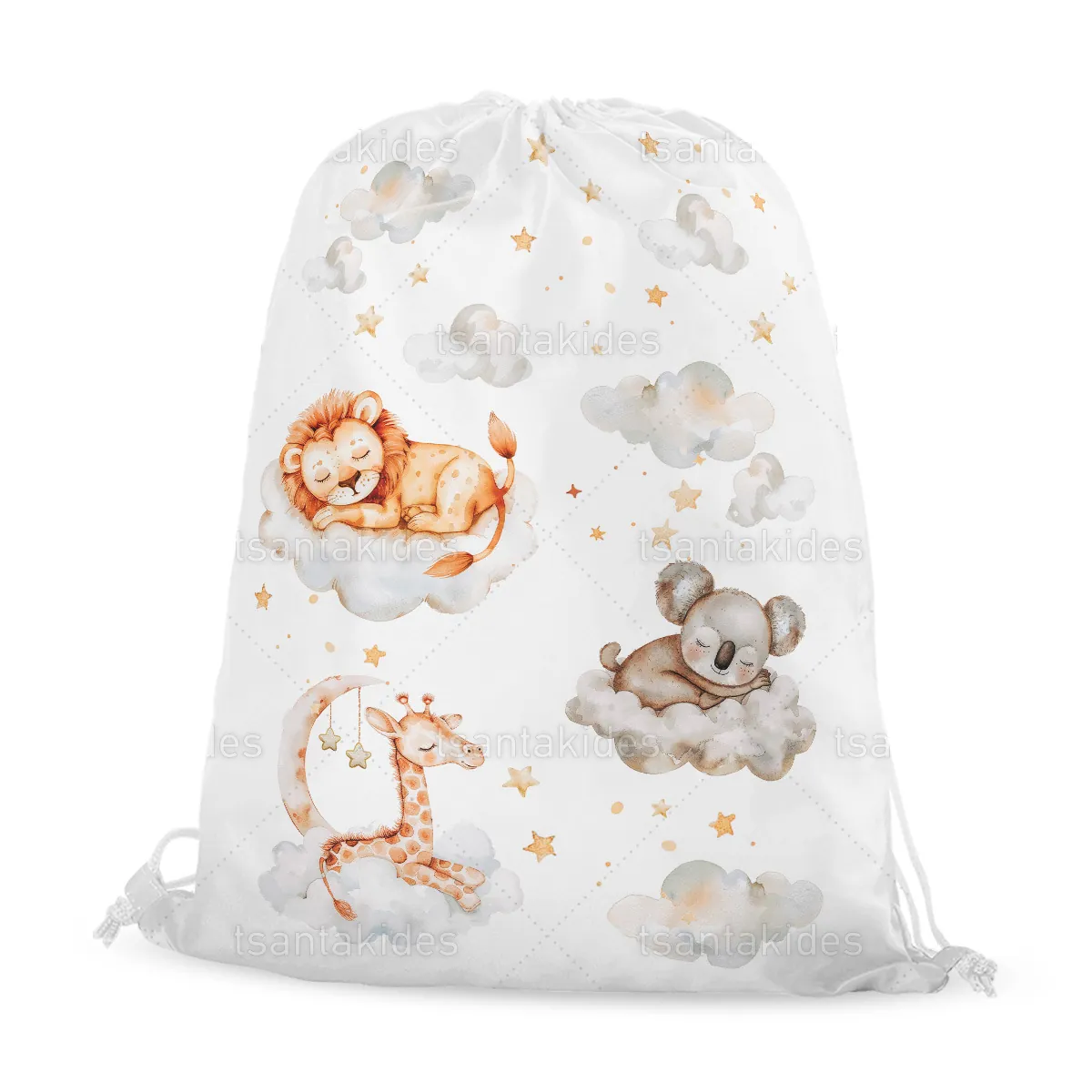 3,50 €Υφασμάτινο σακιδιο πλατης εκτυπωμένο με θέμα Sleeping Animals. ΕΦΑΡΜΟΓΕΣ Βάπτιση, Πάρτυ γενεθλίων, Baby Shower, Gender Reveal κ.α. ΧΑΡΑΚΤΗΡΙΣΤΙΚΑ ΥΦΑΣΜΑ : ΠΟΠΛΙΝΑ – 100% βαμβάκι – 180gr ΕΚΤΥΠΩΣΗ: 1…