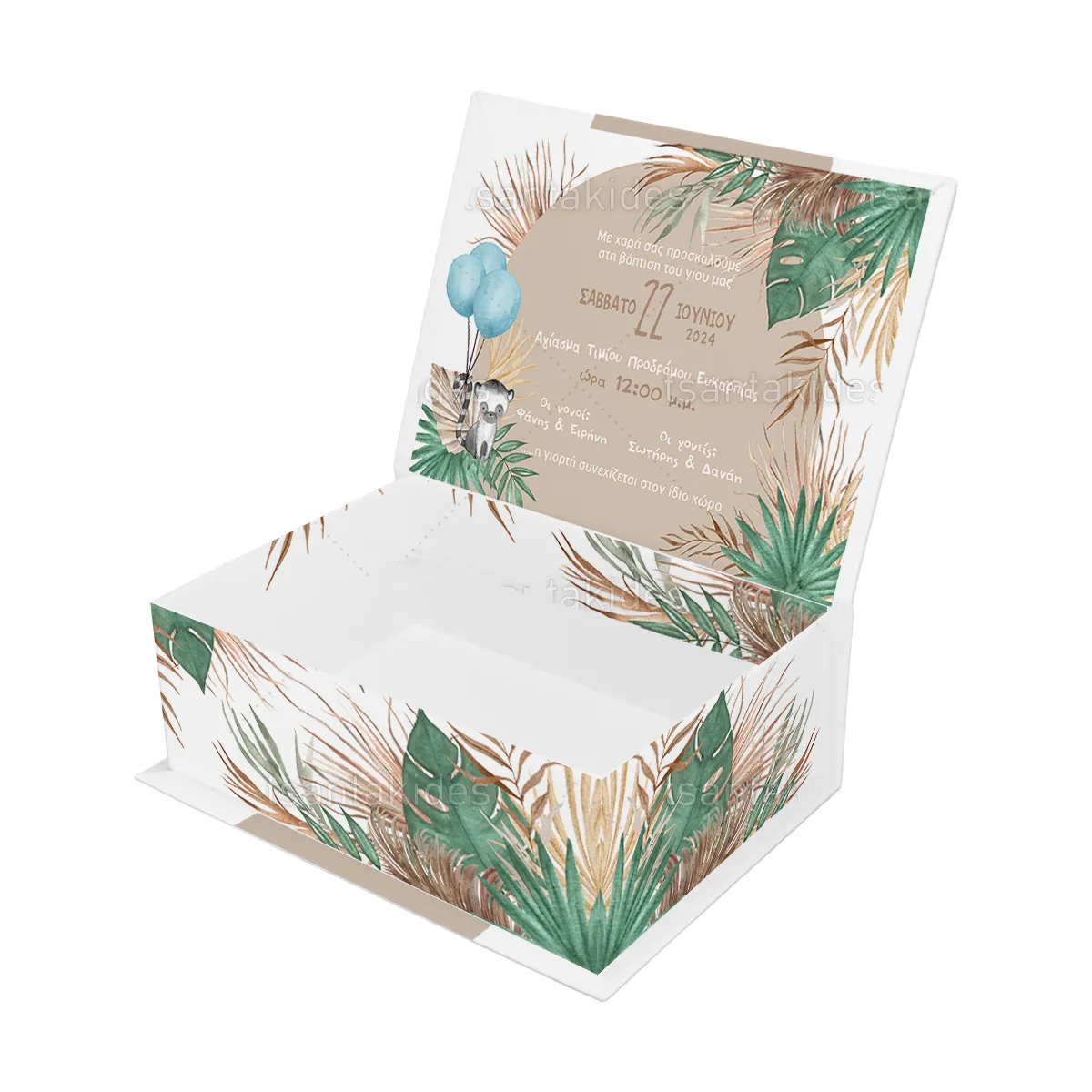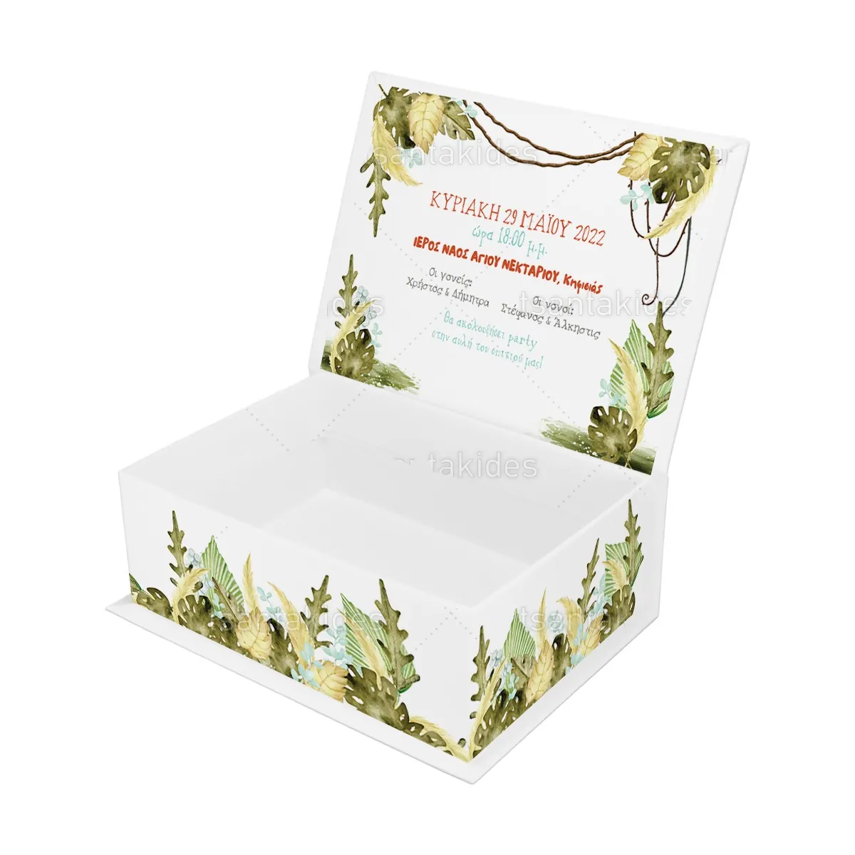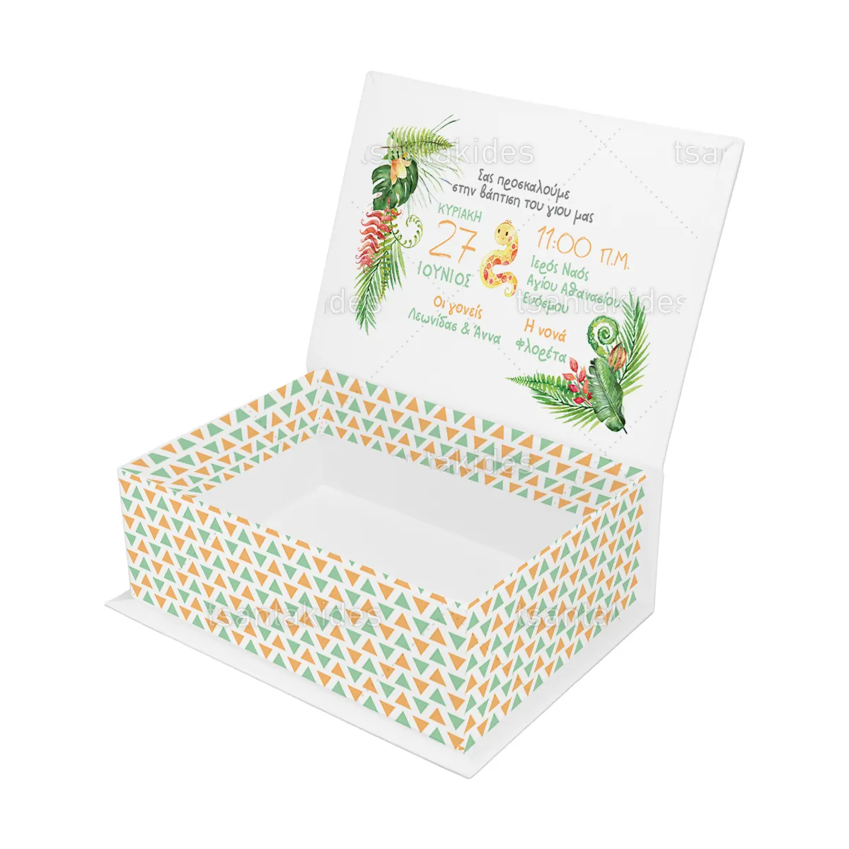 2,10 €Κουτί κασετίνα εκτυπωμένο με θέμα Βοhο Jungle ΕΦΑΡΜΟΓΕΣ Βάπτιση, Πάρτυ γενεθλίων, Baby Shower, Gender Reveal κ.α. ΧΑΡΑΚΤΗΡΙΣΤΙΚΑ ΕΠΕΝΔΥΣΗ: A/A 229 – BRISTOL ΛΕΥΚΟ 140gr ΧΑΡΤΟΝΙ: A/A 1001…