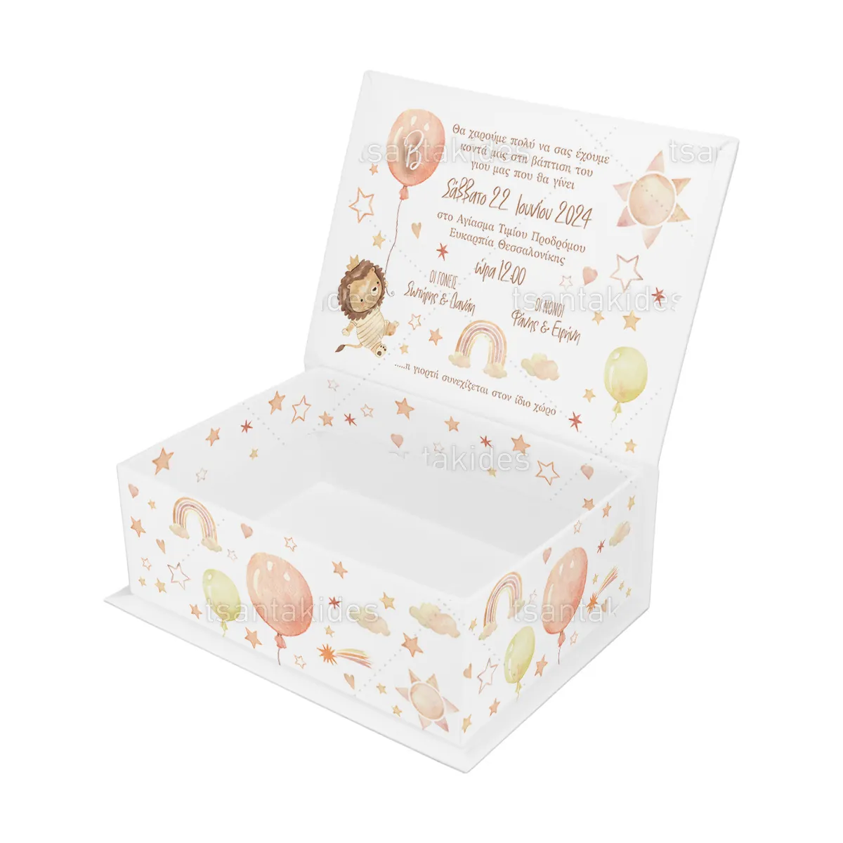 2,10 €Κουτί κασετίνα εκτυπωμένο με θέμα Cute flying lion ΕΦΑΡΜΟΓΕΣ Βάπτιση, Πάρτυ γενεθλίων, Baby Shower, Gender Reveal κ.α. ΧΑΡΑΚΤΗΡΙΣΤΙΚΑ ΕΠΕΝΔΥΣΗ: A/A 229 – BRISTOL ΛΕΥΚΟ 140gr ΧΑΡΤΟΝΙ: A/A…