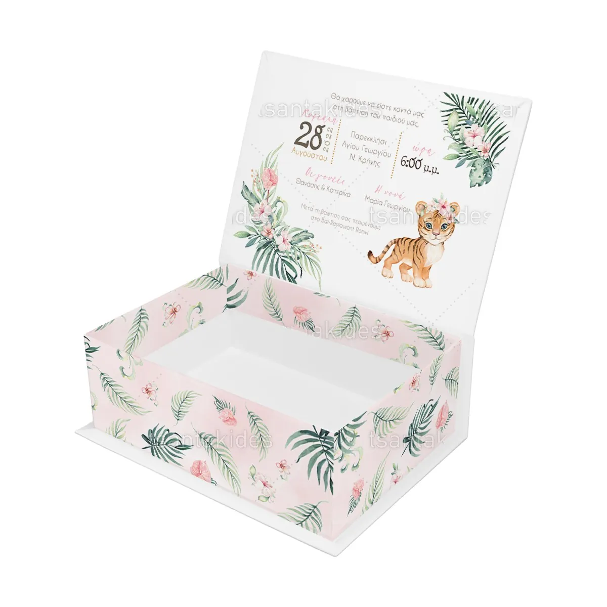 2,10 €Κουτί κασετίνα εκτυπωμένο με θέμα Cute floral jungle ΕΦΑΡΜΟΓΕΣ Βάπτιση, Πάρτυ γενεθλίων, Baby Shower, Gender Reveal κ.α. ΧΑΡΑΚΤΗΡΙΣΤΙΚΑ ΕΠΕΝΔΥΣΗ: A/A 229 – BRISTOL ΛΕΥΚΟ 140gr ΧΑΡΤΟΝΙ: A/A…