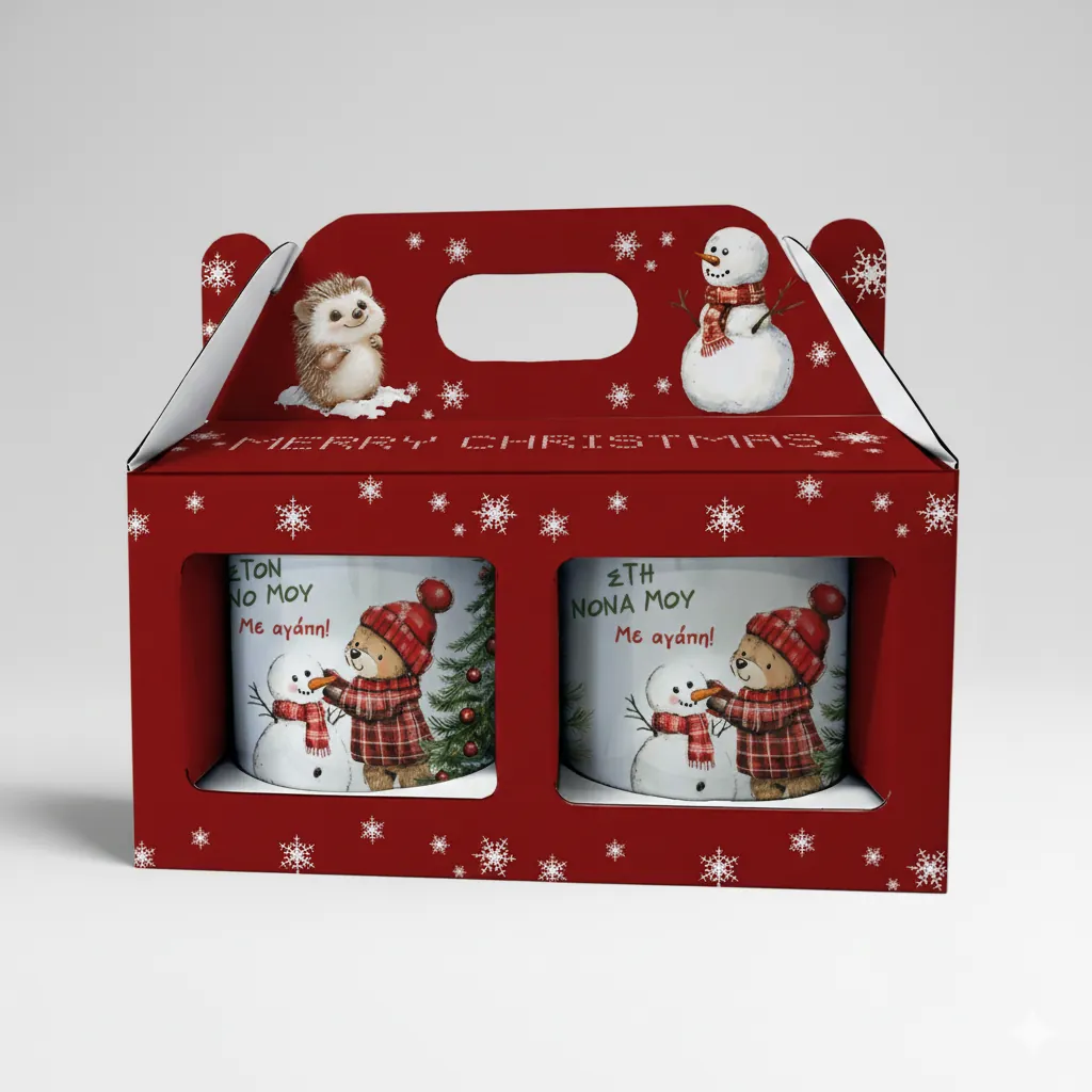 Κουτιά με χριστουγεννιάτικη εκτύπωση για σετ κούπα–σουβέρ ή διπλή κούπα. Premium εμφάνιση, ιδανική εφαρμογή.